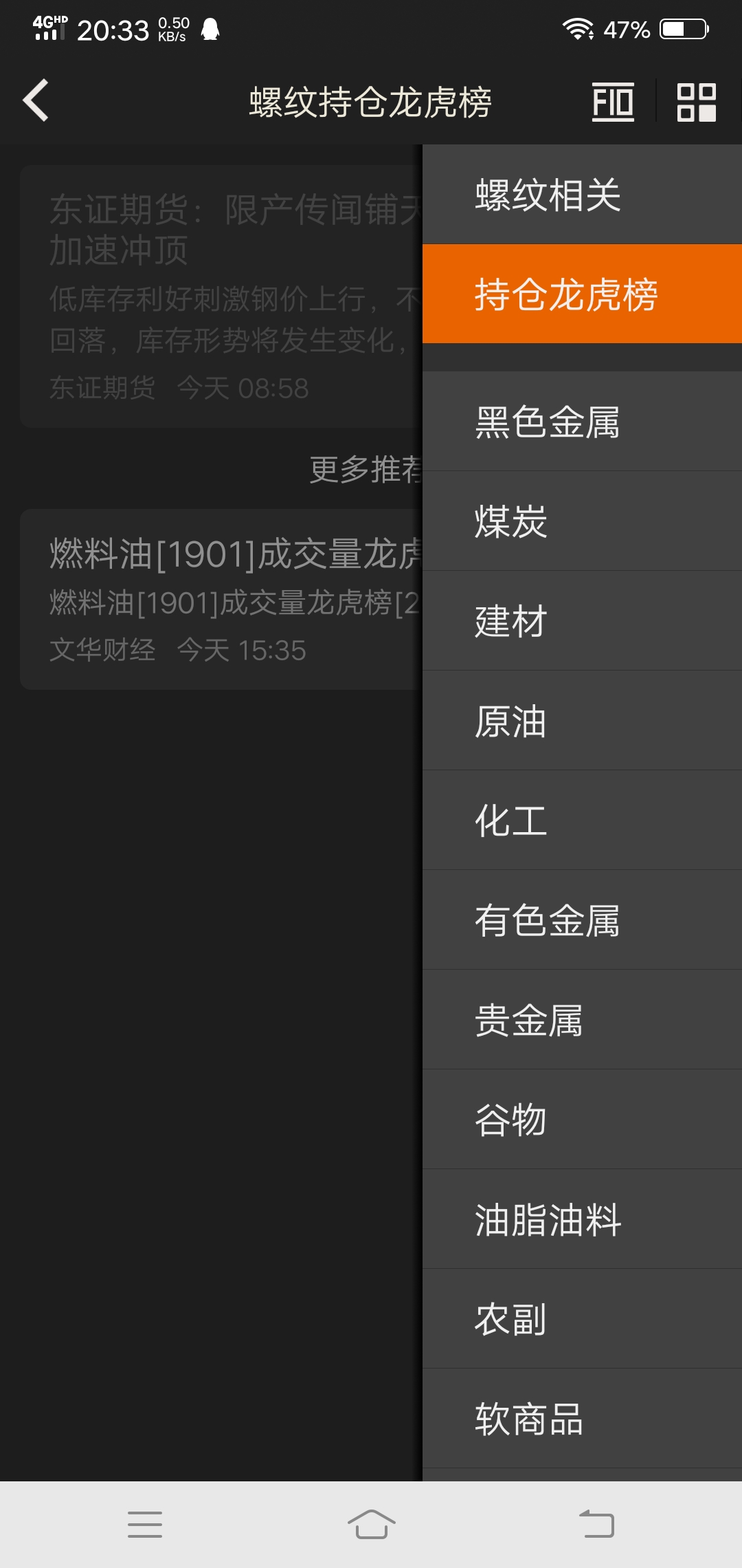 @@持仓龙虎榜 (文华财经随身行Android 5.4.6(239))投资者咨询:@@持仓龙虎榜 (文华财经随身行Android 5.4.6(239))来源:文华财经 日期:2018-8-21 20:37 我是vivo手机,软件更新到5.4.6后不显示持仓量信息了。所有品种都没有显示 文件名:Screenshot_20180821_203304.jpg 技术人员回复日期:2018-8-21 20:44随身行一直提供的都是精简资讯,和专业看盘软件wh6不同新版优化了筛选机制,显示最新的18个小时的资讯如果想要看历史持仓龙虎榜,使用wh6软件就可以了,官网下载:http://www.wenhua.com.cn/