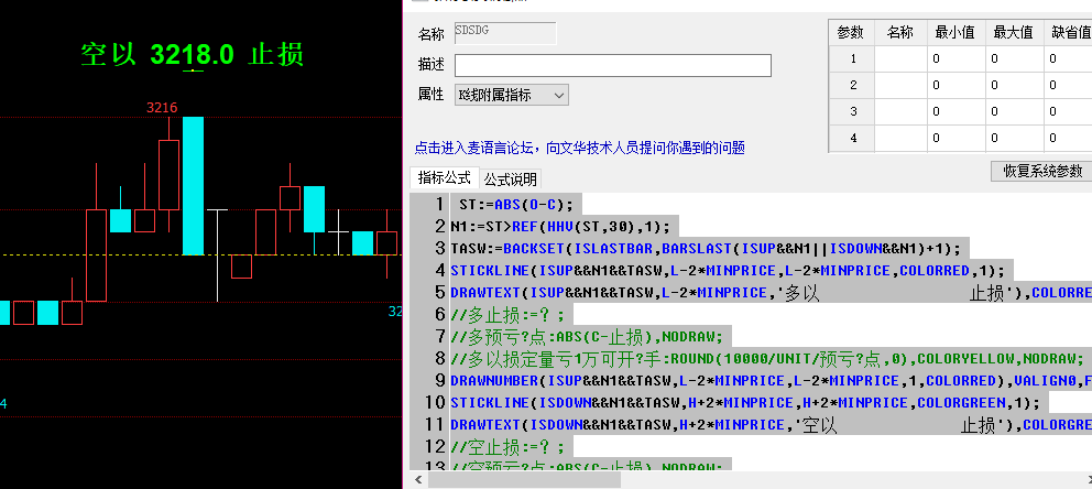DRAWTEXT(ISDOWN&&N1&&TASW,H+2*MINPRICE,'空以 止损'),COLORGREEN,VALIGN2,FONTSIZE30;