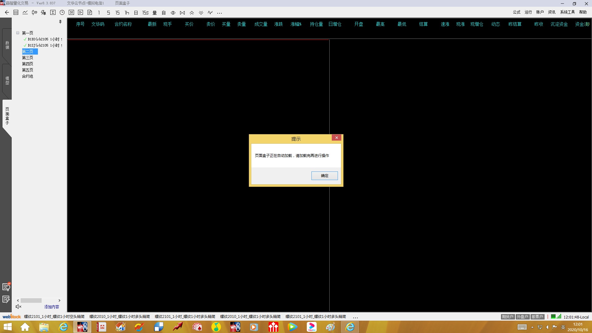 页面盒子的问题 (文华财经)投资者咨询:页面盒子的问题 (文华财经)来源:文华财经 日期:2020-10-16 12:08 今天打开软件,页面盒子第2页加载不上去,按添加内容键也操作不了,不知道出现什么问题了 文件名:无标题.jpg技术人员回复日期:2020-10-16 13:02 从截图看是您页面盒子正在计算,没有计算完 您重启软件再看下