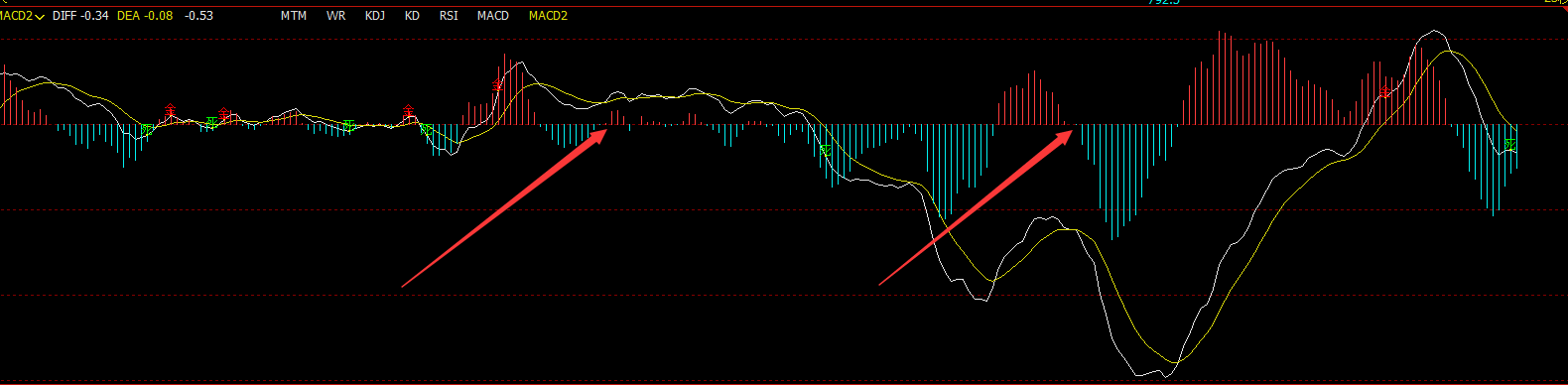 反之(随后macd从正变负数,再有负数变正数,若diff值小于0,那么不发出二次金叉信号)