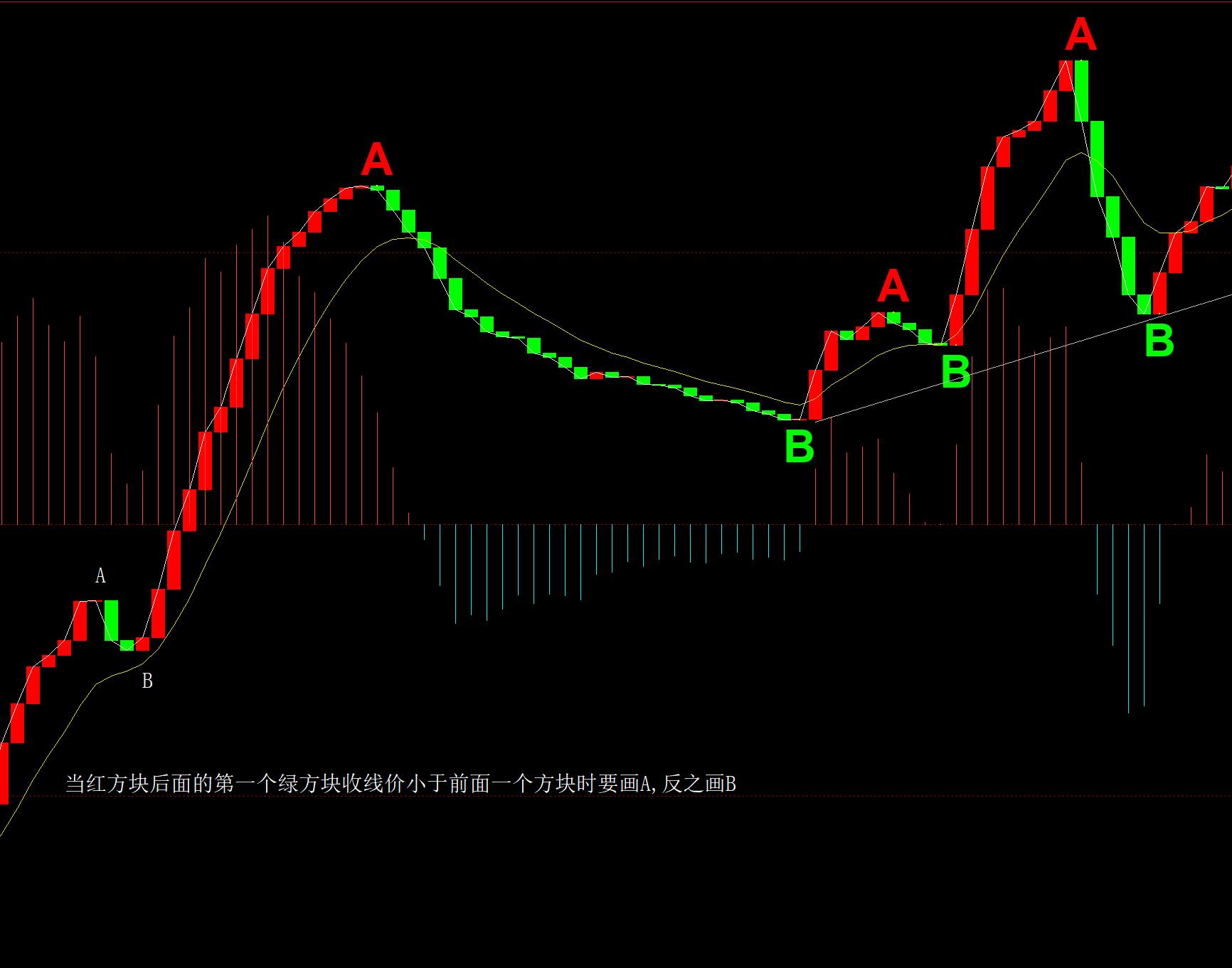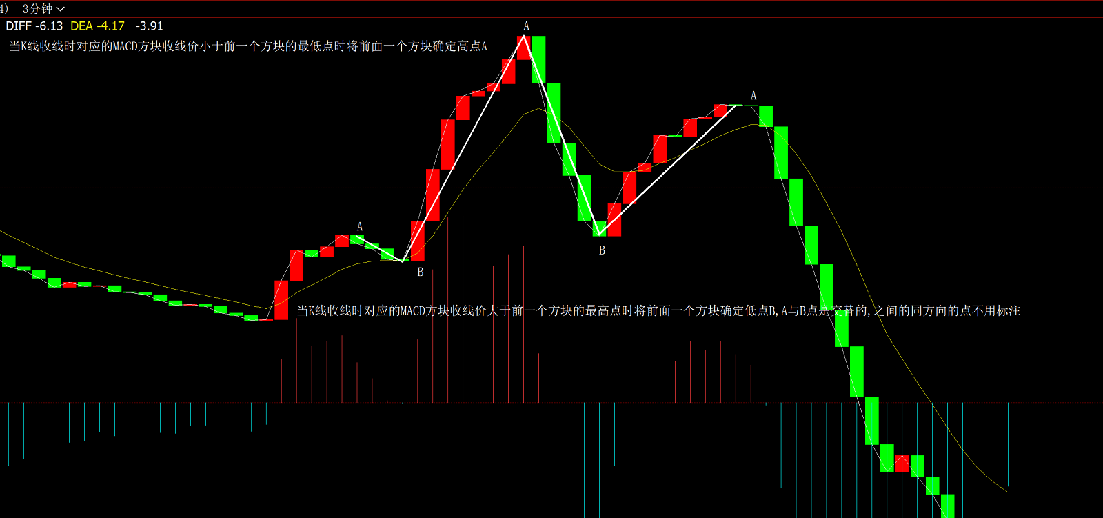 红方块后面第一个绿方块必须收线价小于前面一个方块最低点时才能确定高点,反之确定低点.现在是只要红的后面是绿方块时就确定高点了