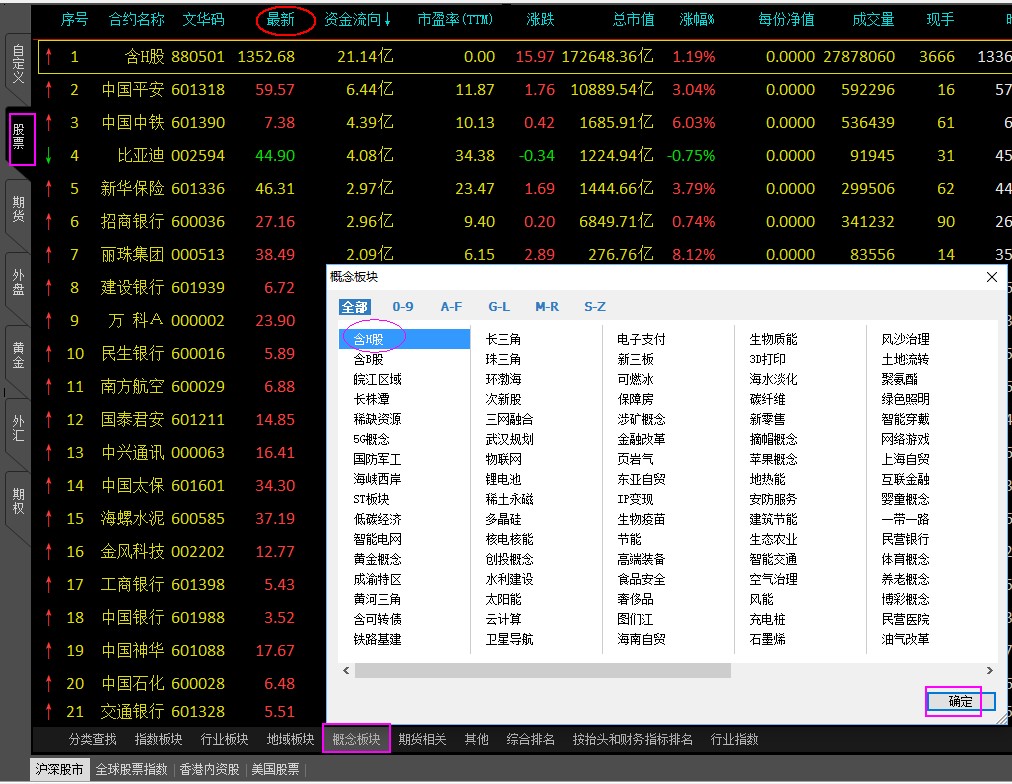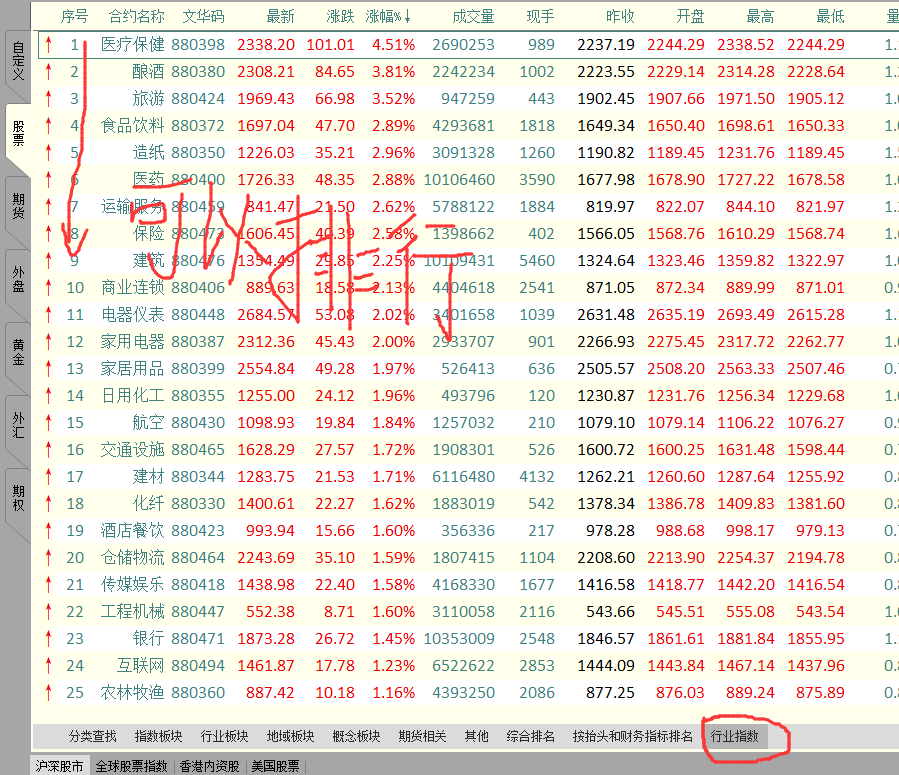 [原创]没有概念板块指数排行 (文华财经WH6赢顺V6.7)投资者咨询:[原创]没有概念板块指数排行 (文华财经WH6赢顺V6.7)来源:文华财经 日期:2018-8-21 14:34 没有概念板块指数排行。技术人员回复日期:2018-8-21 14:46 有的 左侧导航条进入股票报价,如下图位置查看概念板块,点击需要的抬头项即可按升序/降序显示投资者咨询:[原创]没有概念板块指数排行 (文华财经WH6赢顺V6.7)来源:文华财经 日期:2018-8-21 14:34 只有概念指数不能排行,行业指数就可以排行技术人员回复日期:2018-8-21 15:15 参考2楼回复,进入对应概念板块的报价后点击抬头项也是可以排序的, 点击抬头后,对应抬头上出现向上或向下箭头就是能够排序的 您是指概念板块报价未显示序号列? 各抬头列需要设置后显示的,概念板块报价列表右键》抬头格式域调整,备选抬头中找到“序号”选入后,上移到最前面即可