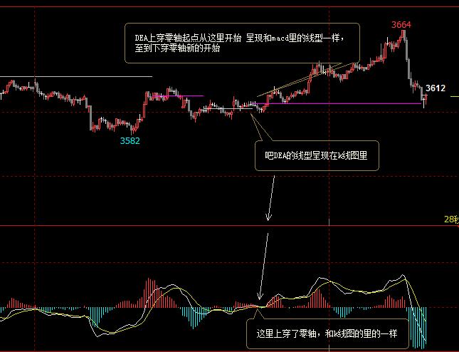 老师好 这个是macd指标作为k线附图,k线图中紫色横线为DEA上穿零轴后出现的线 在这个横线在k线图出现后吧附图里的macd里的DEA线型也变现出来 能否实现 谢谢