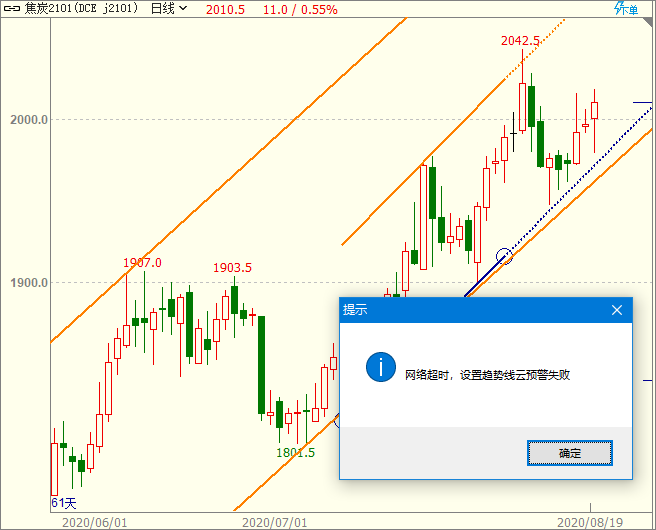 网络超时,是刚发现的,盘口不更新是另一个问题,无意重复发帖,本帖只想解决不能设云预警的问题
