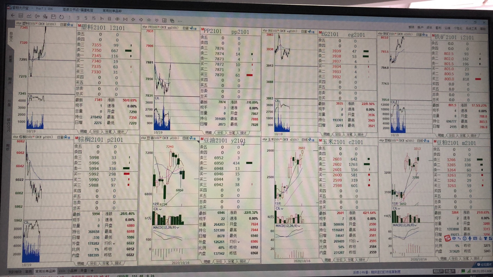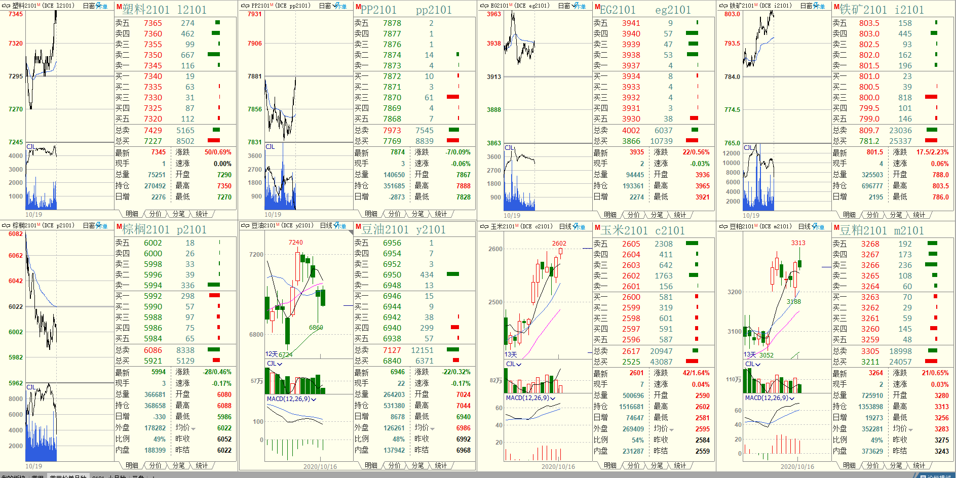 早上开盘前只有三档行情 并且没有总卖总买数据? (文华财经)投资者咨询:早上开盘前只有三档行情 并且没有总卖总买数据? (文华财经)来源:文华财经 日期:2020-10-19 9:33 文件名:19号早上9点开盘前.jpg 文件名:16号夜盘23.00后截图.png 技术人员回复日期:2020-10-19 9:40 不显示总买总卖是正常的 交易所现在在集合竞价期间或者连续交易暂停期间,不发送总买总卖了。在开盘后才会统一发送 五档行情显示问题,我们这里核实确认下,有结果在此回复