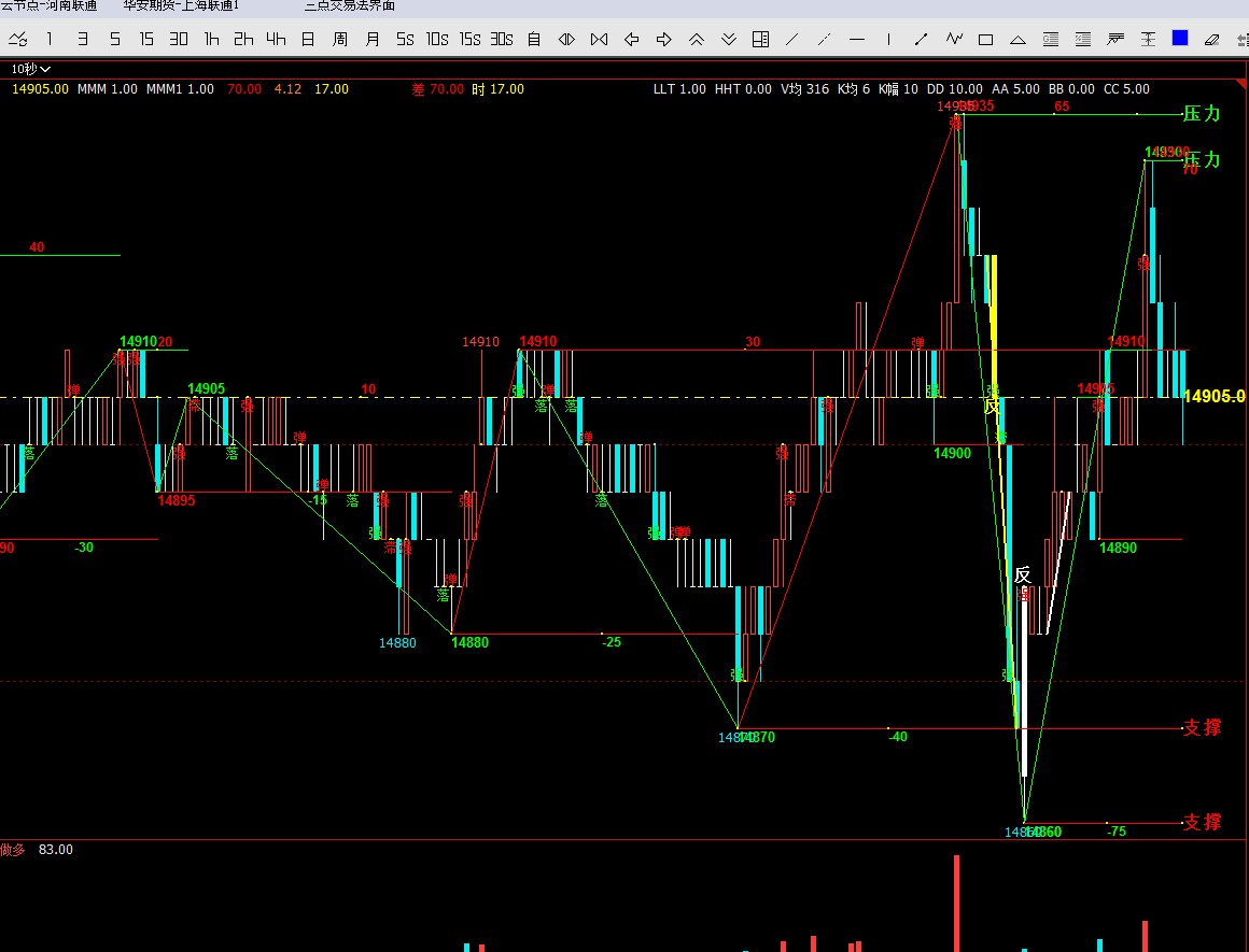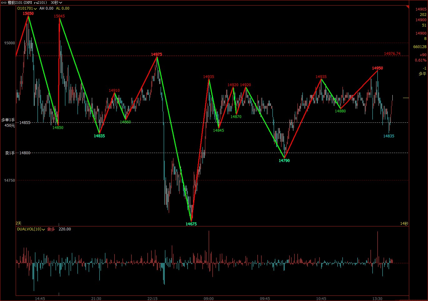 请老师,给K线标注转折点位,并向右延长光标动态长度