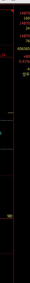 老师,如上图,Y轴旁边的动态光标(小黄线)还没有延长,这个光标软件自带的,这个光标随右边的盘口信息而动
