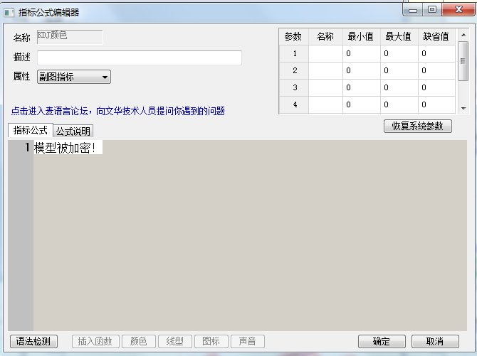 请问wh6自编指标如何加密 (文华财经随身行Android 5.4.6(239))投资者咨询:请问wh6自编指标如何加密 (文华财经随身行Android 5.4.6(239))来源:文华财经 日期:2018-8-20 16:52 如题,请教技术人员回复日期:2018-8-20 16:54 使用输出可执行副本功能就可以了,指标管理器》导入导出》输出可执行副本 具体可参考这个精华帖2楼进行设置【功能介绍】:文华指标公式加密 投资者咨询:请问wh6自编指标如何加密 (文华财经随身行Android 5.4.6(239))来源:文华财经 日期:2018-8-20 16:52 试过了,不可以。我要输密码那种,况且也还是能看到公式技术人员回复日期:2018-8-21 11:25软件现在提供的是更加安全的指标加密功能,如下图是看不到公式的 您进入2楼精华帖按介绍体验下输出可执行副本功能就明白了 如果您在公共电脑上使用软件的话可以使用锁屏功能,右上角》系统工具》软件锁屏