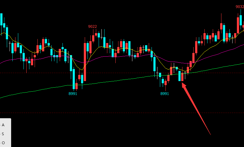 支撑线:(MA(CLOSE,3)+MA(CLOSE,6)+MA(CLOSE,13)+MA(CLOSE,21))/4,COLORYELLOW;