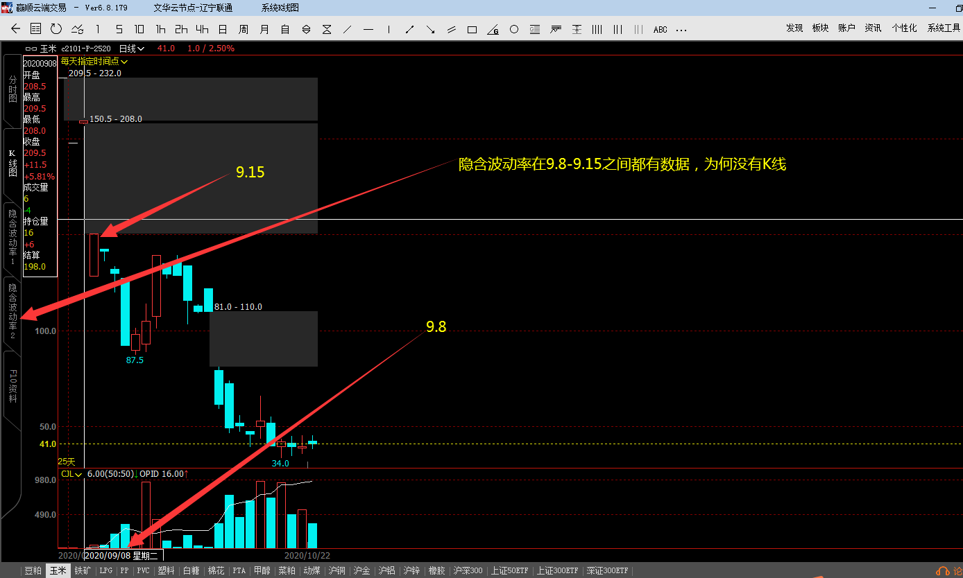 老师,为何缺少几根K线 (文华财经)投资者咨询:老师,为何缺少几根K线 (文华财经)来源:文华财经 日期:2020-10-22 13:48 老师,为何缺少几根K线 文件名:qq截图20201022134635.png技术人员回复日期:2020-10-22 13:51 这里并不是缺少k线,数据是准确、完整的 并且当日没有行情时,是取最近一笔期权价格,来计算隐含波动率的 即 9号到14号,是取8号的收盘价来计算 所以这个时间范围,没有k线,但是能查看到隐含波动率曲线,是正常的 投资者咨询:老师,为何缺少几根K线 (文华财经)来源:文华财经 日期:2020-10-22 13:48 老师,我是想说9.8日为何直接就到了9.15日,之间还有交易日的呀技术人员回复日期:2021-1-13 17:07 是因为中间的这几个交易日都没有行情,不会绘制k线。