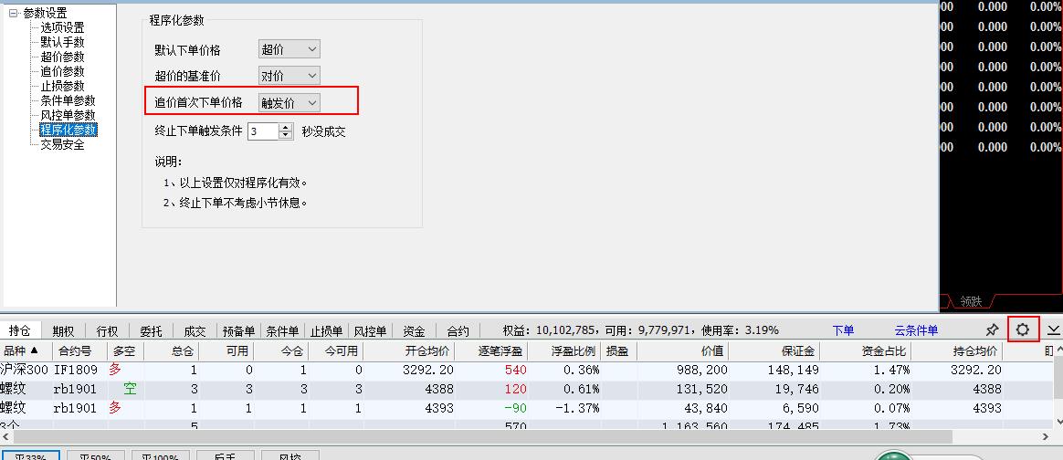 首次追价下单在账户区>程序化参数中设置“触发价”