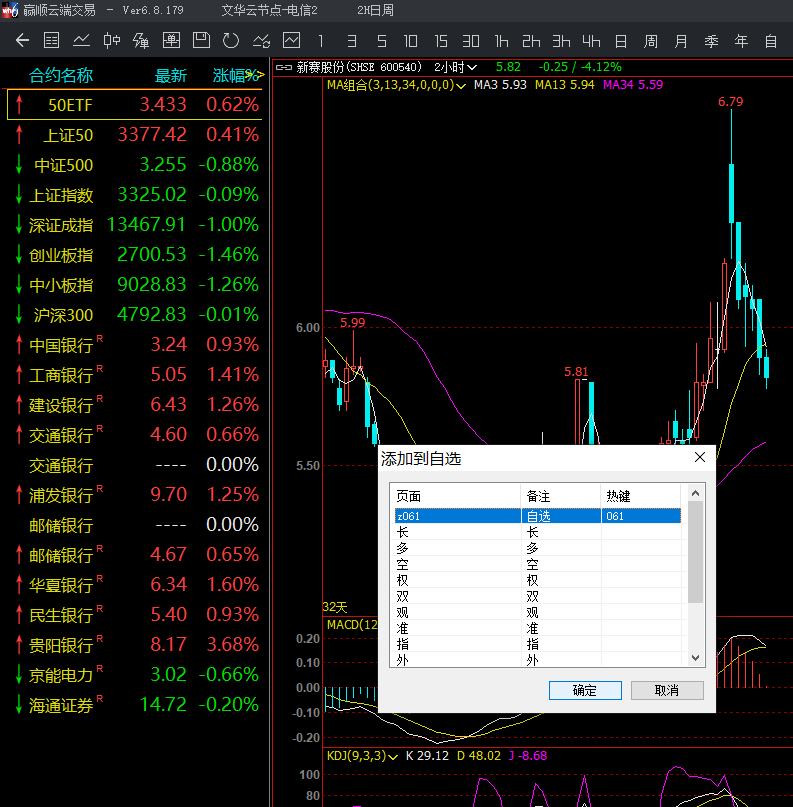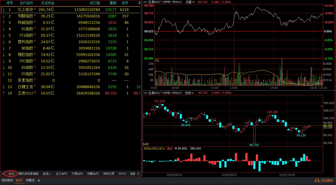 [建议]关于添加品种到自选板块 (文华财经)投资者咨询:[建议]关于添加品种到自选板块 (文华财经)来源:文华财经 日期:2020-10-22 7:03 文件名:1.png 图一 在图标窗口切换一个新合约或股票 然后右键--添加到自选 文件名:2.png 图二 添加到自选或自建的版块后 , 左侧的报价列表栏中 新添加的合约或股票并不会立即显示 而是需要再手动再点击一下自选栏或切换到其他页面再切回来才会显示新添加的合约 有些不方便,希望能改进,谢谢技术人员回复日期:2020-10-22 8:07您当前是在多窗口页面,在k线图操作,报价列表是不会实时刷新的,否则会影响看盘效率 点击一下左侧报价列表窗口的自选书签刷新一下就好了 文件名:01.jpeg