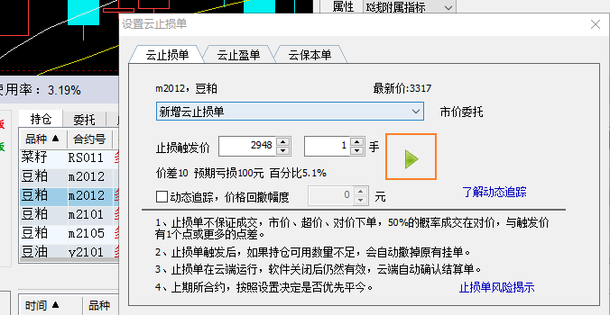 按空格键调出下单版-》持仓栏选中持仓点鼠标右键-》设置止损止盈单