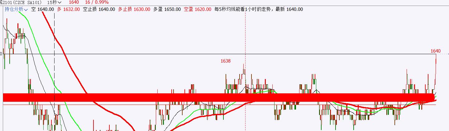 当空和空损值相等时,在多止损这根红线下方用红色36号字标注多损值。