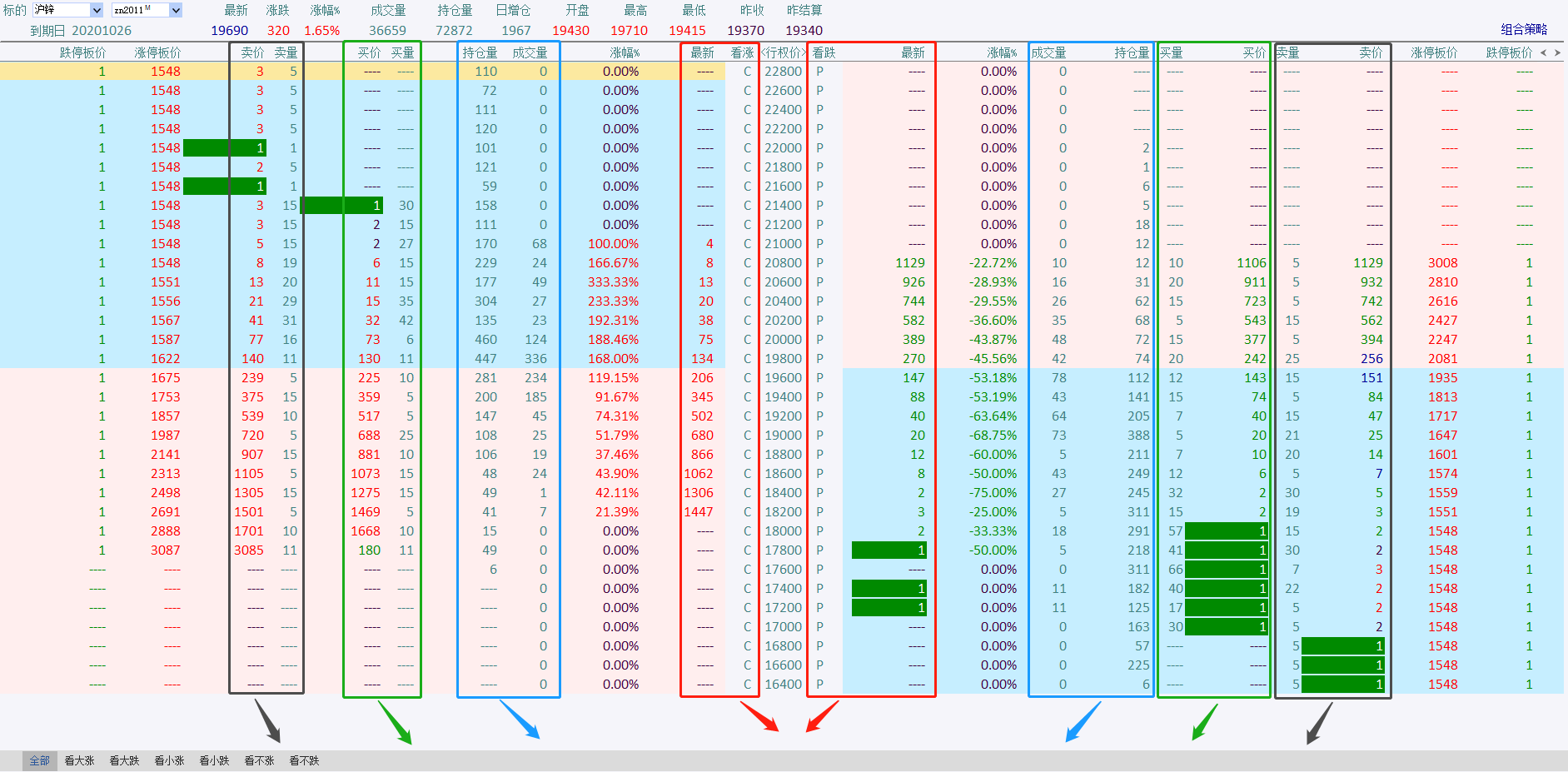 关于T型报价列表 (文华财经)投资者咨询:关于T型报价列表 (文华财经)来源:文华财经 日期:2020-9-11 18:38 右边的认沽列表,没有像左边那样归并 应该像K线翻转一样,要搞两套显示机制才行 文件名:t型报价.png 技术人员回复日期:2020-9-11 18:42 目前两侧抬头在调整宽度时,都是在左侧增加这个宽度,不是镜面对称的这种效果类似的需求比较少见,我们后续会搜集关注下 投资者咨询:关于T型报价列表 (文华财经)来源:文华财经 日期:2020-9-11 18:38 请问这个显示左右不对称,有优化时间表吗 文件名:微信截图_20201020213417.png技术人员回复日期:2020-10-20 21:41 目前您手动拖动抬头到默认宽度查看, 或者在报价列表右键-》抬头格式调整,这里可以将不关注抬头选出 您的需求我们后续会搜集考虑的