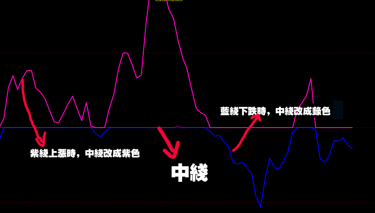 我要(紫线波浪时,中线调成紫色,蓝线波浪时,中线调成绿色)