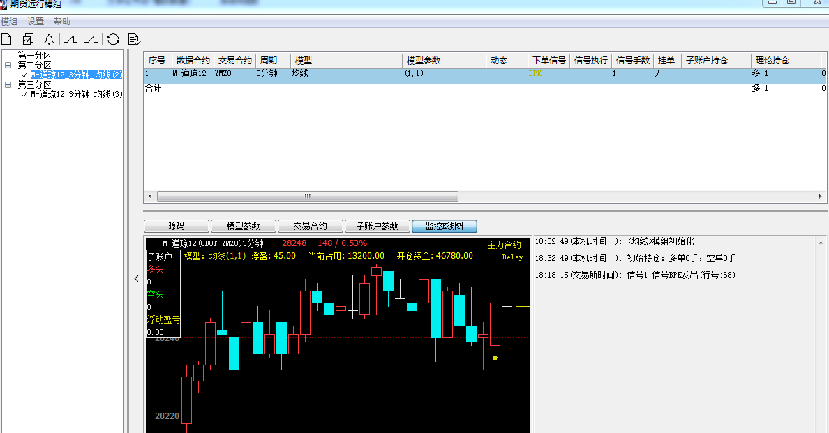 加载模组实际运行,公式需要编写算法模型部分才会自动下单