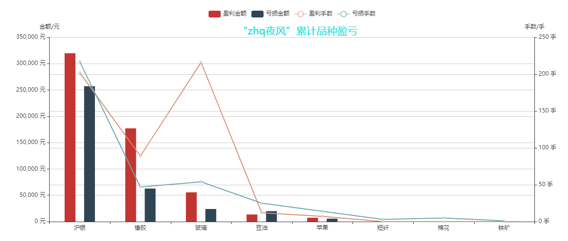 在期货市场,大家常说“选对品种就能吃大肉“。面对国内市场50多个品种,很多时候我们会感觉遍地是机会,但又无从下手,但在”zhq夜风“选手身上,这句话却体现的淋漓尽致。点开”zhq夜风“的交易报告,累计品种盈亏中排名前三位的品种正是近三个月来市场最赚钱的白银、橡胶和玻璃等几个品种,可见,其量化策略在选品种抓机会上确实有独到之处。