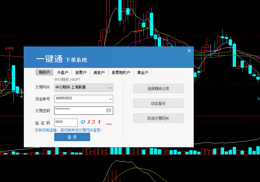 进入不了交易系统 (文华财经)投资者咨询:进入不了交易系统 (文华财经)来源:文华财经 日期:2020-11-17 14:28最近三个交易日登陆交易系统很困难,上海联通和上海移动两个通道都很难登进去,一般都是没有可用连接。 文件名:screenshot20201117142647.png技术人员回复日期:2020-11-17 14:35 截图这个窗口,点击“优选交易网关” 选择其他ping值较小的网关登录看下。另外,您也排查下本地网络,重启路由器或者换成网线连接,保证本地网络稳定。如果还是不行,可以联系期货公司反馈一下,交易的服务器都是期货公司提供的。