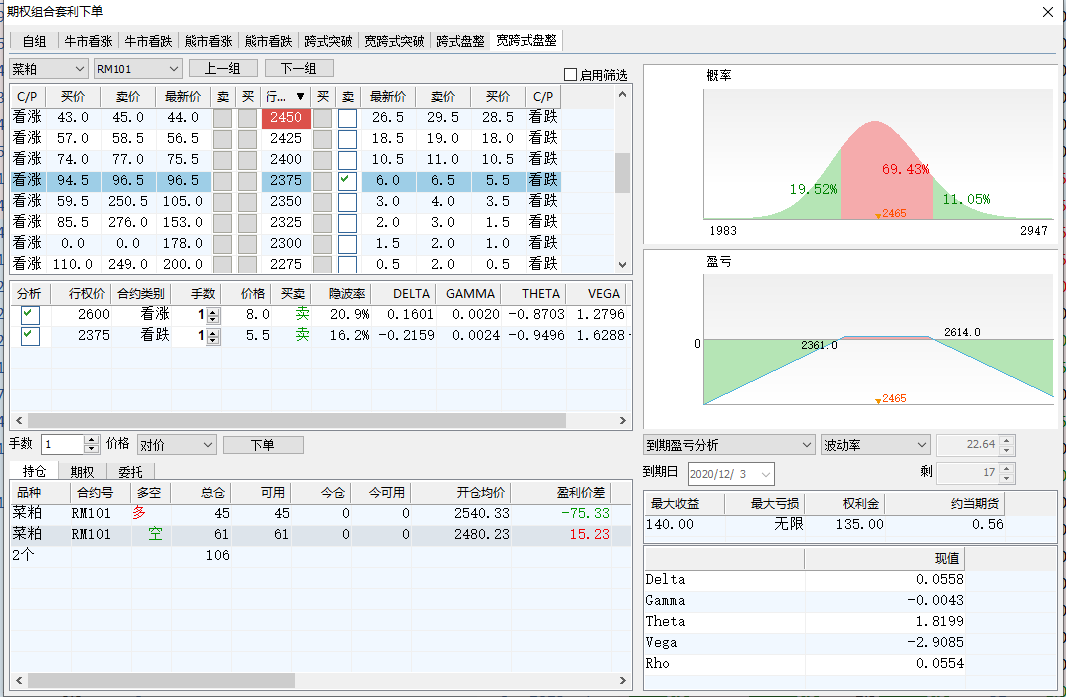 期权策略可以画线下单的吗 (文华财经)投资者咨询:期权策略可以画线下单的吗 (文华财经)来源:文华财经 日期:2020-11-16 22:46 期权策略可以画线下单的吗,这个窗口找不到 文件名:123123123.png,还有有没有优惠的技术人员回复日期:2020-11-16 22:51 不行的,期权组合策略只能在当前页面手动下单实现,不支持条件单的。 另外,目前交易所对期权对锁等组合策略有结算保证金优惠,比如您盘中进行期权组合策略下单,期货公司会在收盘结算时,根据保证金优惠重新计算所需保证金; 具体您可以联系您的期货公司进行咨询和申请。
