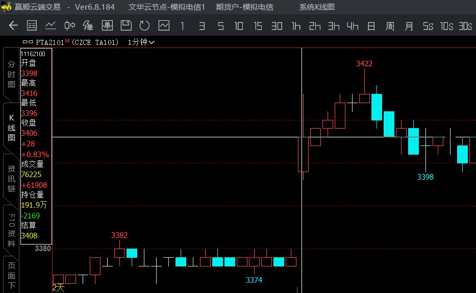 PTA2101合约第一分钟的最低价是3396,不是3096,确认下您1楼描述的几个价格是否都是对的;