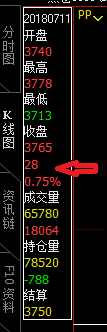 K线主图,显示 (文华财经WH6赢顺V6.7)投资者咨询:K线主图,显示 (文华财经WH6赢顺V6.7)来源:文华财经 日期:2018-8-20 21:19 老师上图的28是什么意思,是怎么计算出来的,谢谢技术人员回复日期:2018-8-20 21:27 跟个性化设置的涨跌计算比较价格有关 比如设置昨收盘,那么28指的就是当根k线的收盘价,相比前一根k线的收盘价,上涨28 菜单 个性化》个性化设置,这里可以调整