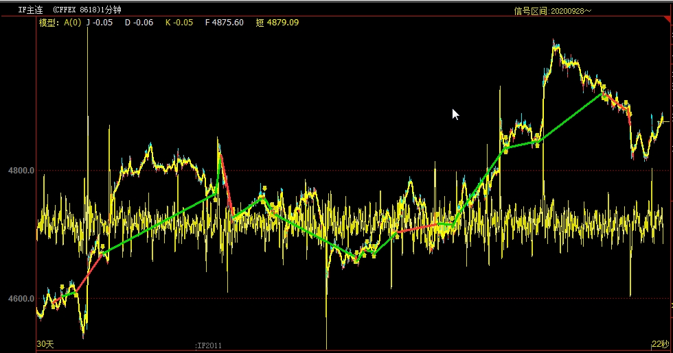 短^^(EMA(CLOSE,5)+EMA(CLOSE,15)+EMA(CLOSE,24)+EMA(CLOSE,36))/4,COLORYELLOW,LINETHICK2;