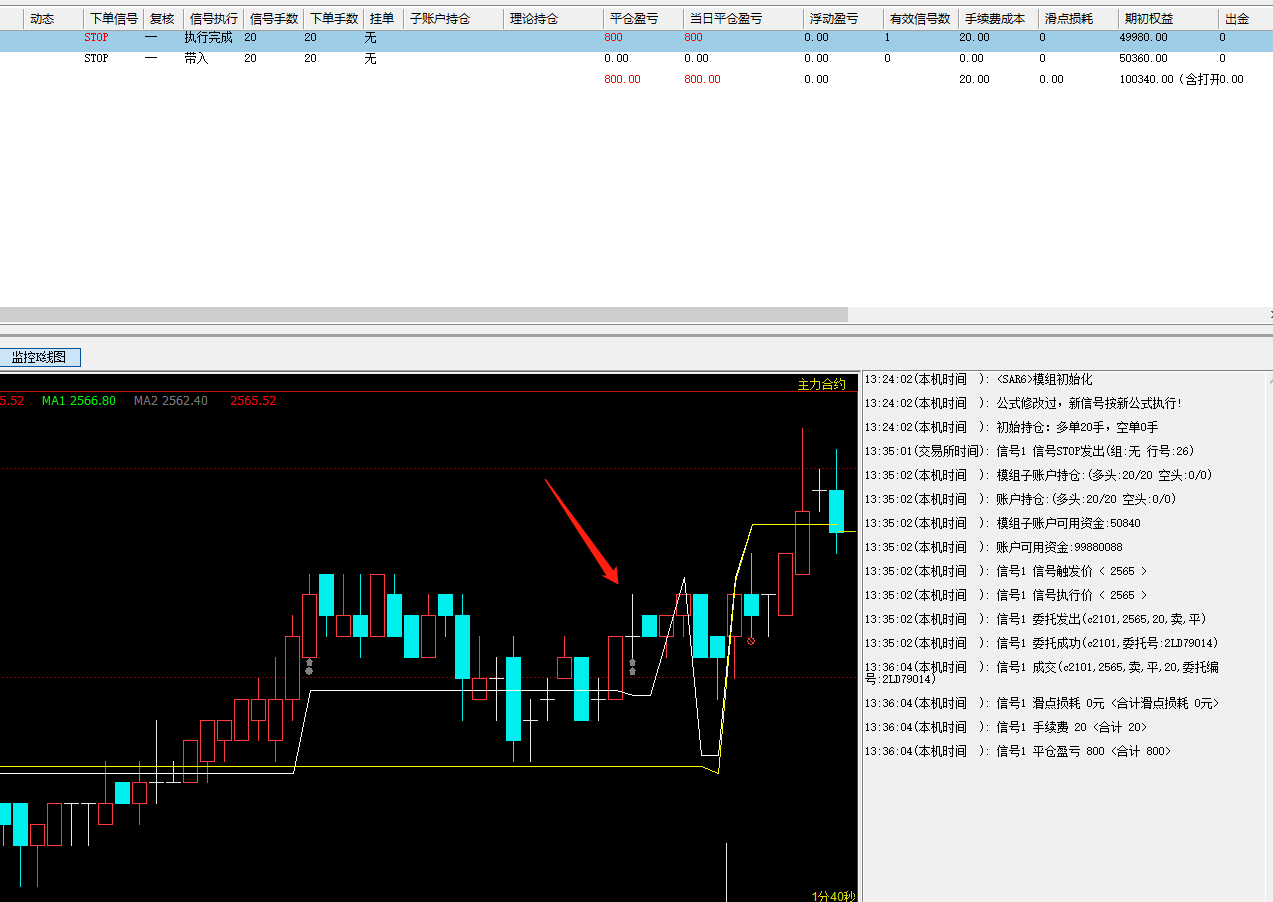 开仓价是2561,我观察到,当价格到了2564的位置,一直没执行。等到2565才执行的,最后盈利4个点,虽然实际出来的这单结果是好的。但如果价格刚在2564位置不成交行情突然下来了,那我不就吃亏了?这个运行的机制又是怎样的呢?