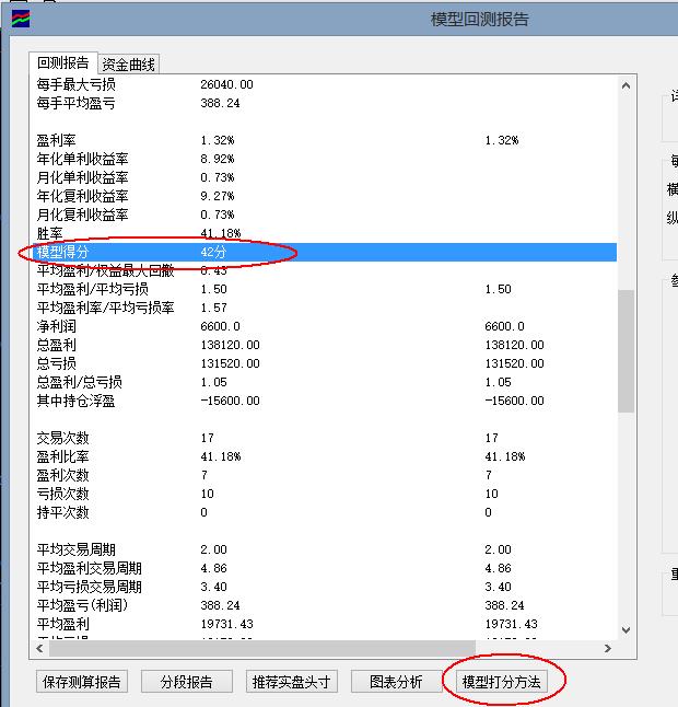 查看交易模型的分数 (文华财经)投资者咨询:查看交易模型的分数 (文华财经)来源:文华财经 日期:2020-11-15 16:20 老师好,怎么查看交易模型的分数?回测报告中找不到呢? 技术人员回复日期:2020-11-15 17:06 您查看回测报告参考模型得分就可以了。 点击回测报告下方模型打分方法了解下计算方法。 文件名:2.jpg投资者咨询:查看交易模型的分数 (文华财经)来源:文华财经 日期:2020-11-15 16:20 老师,怎么查看一套模型组合的回测分数?技术人员回复日期:2020-11-15 18:34 组合回测您可以切换到回撤贡献度分析这里查看。