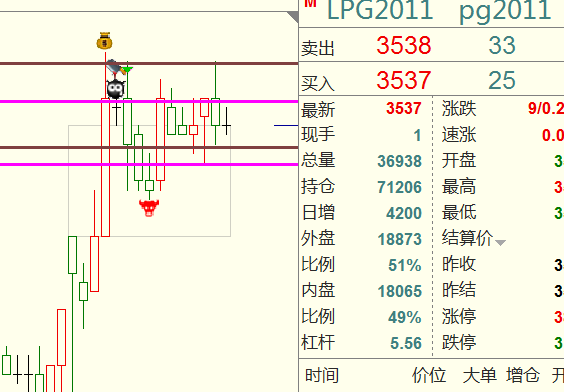如图.最后一根平线前面有一根阴线.画这根阴线的高.底水平线.最后一根平线前面有二根连线的阳线.画这二根连线阳线最高.最低水平线到最后一根K线.如此反复