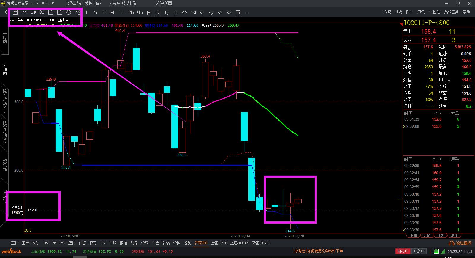 您买入看跌期权,支付付的权利金是142,当前的权利金价格是157