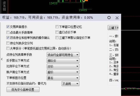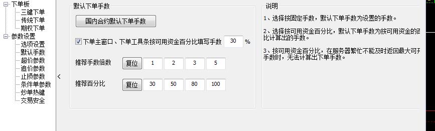 下单板位置和百分比开仓 (文华财经)投资者咨询:下单板位置和百分比开仓 (文华财经)来源:文华财经 日期:2020-11-15 10:39 1 勾选右 不在右显示 2 下单百分百如何填写 不太把握的30% 把握大的就多选 文件名:赢顺截图20201115102442.jpg 文件名:赢顺截图20201115102826.jpg 投资者咨询:下单板位置和百分比开仓 (文华财经)来源:文华财经 日期:2020-11-15 10:39 文件名:赢顺截图20201115102721.jpg 技术人员回复日期:2020-11-15 10:42 问题1: 勾选下单板居右显示后,再点击下左侧的 三键下单,切换回下单界面就可以了. 问题2 : 条件单不支持百分比开仓。 是因为期货是杠杆交易的制度,百分比止损很可能出现爆仓的情况,并且百分比设置的点位可能不符合最小变动价位,执行不了的。 您手动调整下下单手数就可以了。