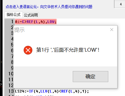 源码检测不通过 (文华财经)投资者咨询:源码检测不通过 (文华财经)来源:文华财经 日期:2020-11-14 16:34请问这个问题的原因,应该怎么修改 文件名:screenshot20201114163222.png 技术人员回复日期:2020-11-14 17:02 把第一句中的后面的 ,LOW 删掉;