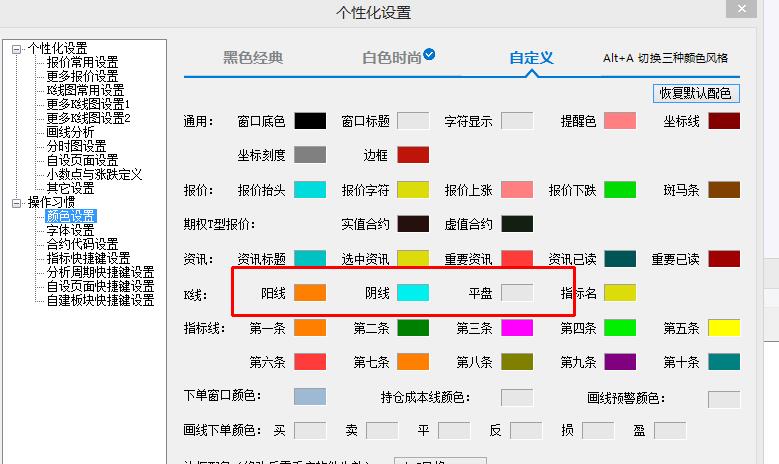 投资者咨询:K线的颜色 根据软件的背景颜调整 (文华财经)