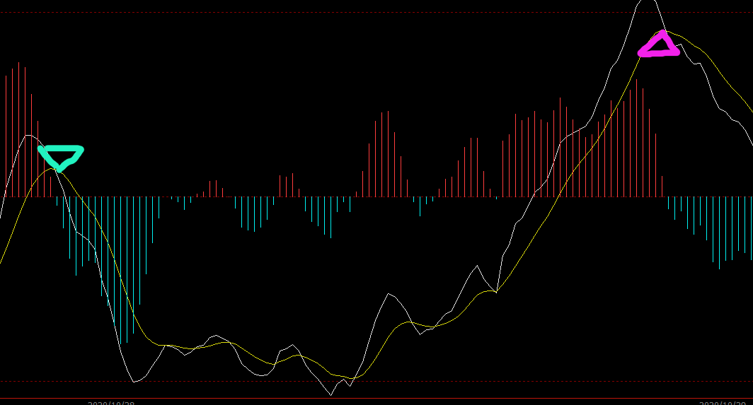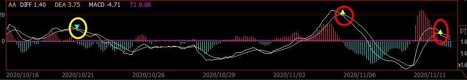 我们分析了下,如果出现 黄色箭头和 蓝色箭头 条件重合的K线,就是当前的蓝箭头是上个黄箭头。