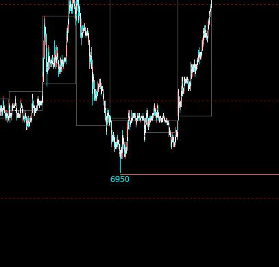 在分钟图里,昨天前天和大前天这三天里的最高价和最低价出现的位置,向右画水平线,无限长那种,意思就是只有两条线