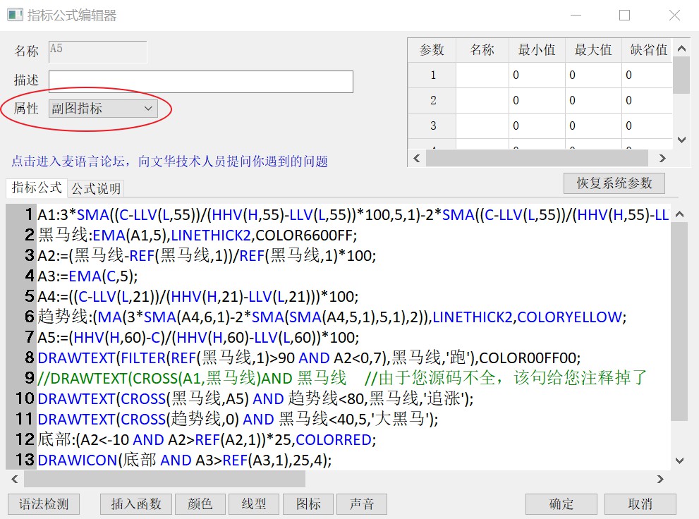 黑马线:EMA(A1,5),LINETHICK2,COLOR6600FF;