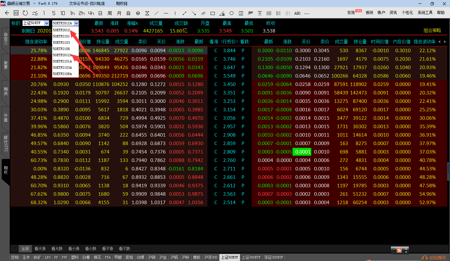 比如您截图的50ETF期权:标的物50etf分红以后,原来的期权合约就都加了A,上市时间早,