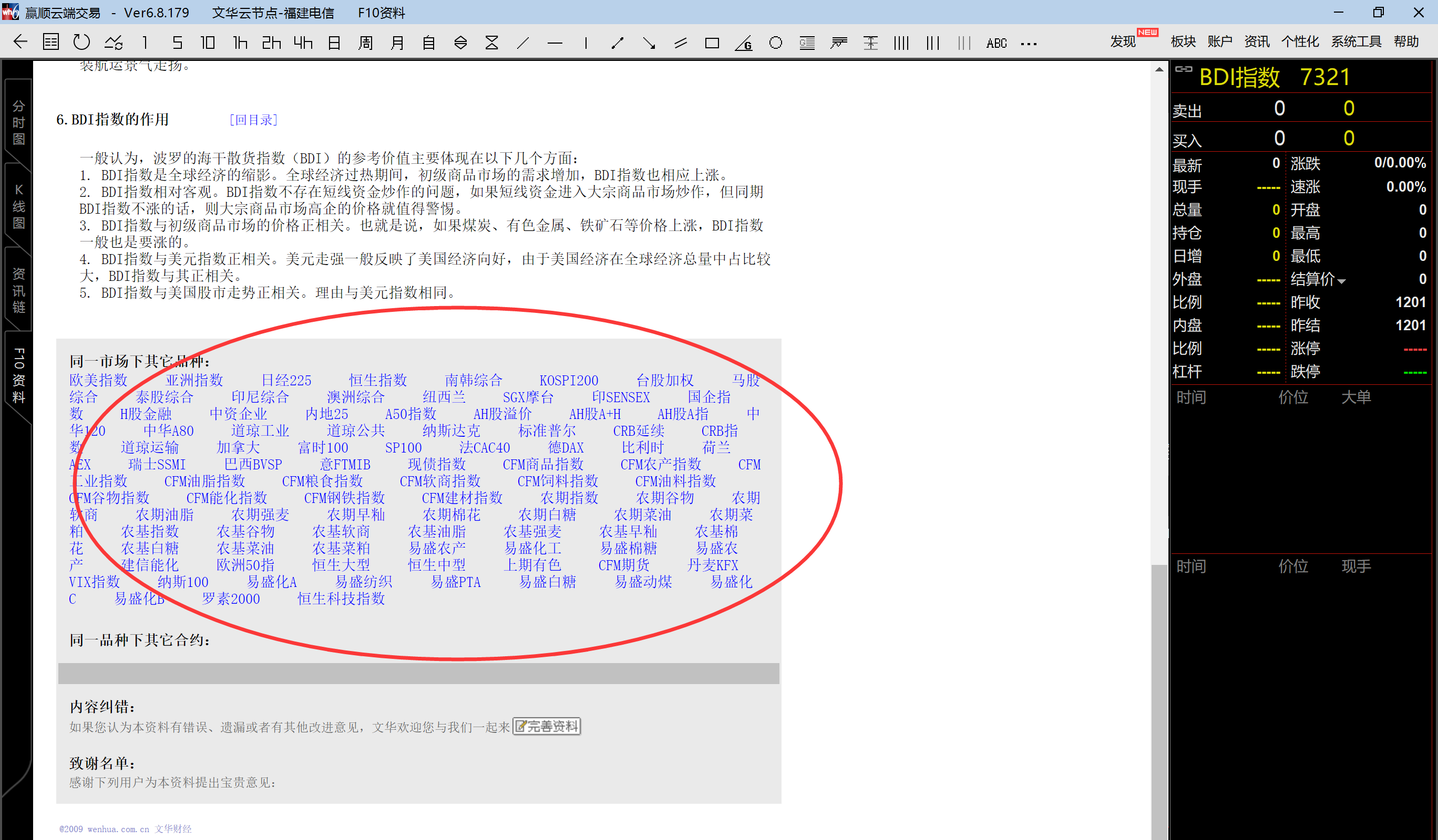 老师,BDI指数在F10中,圈内:同一市场下其他品种,是什么意思