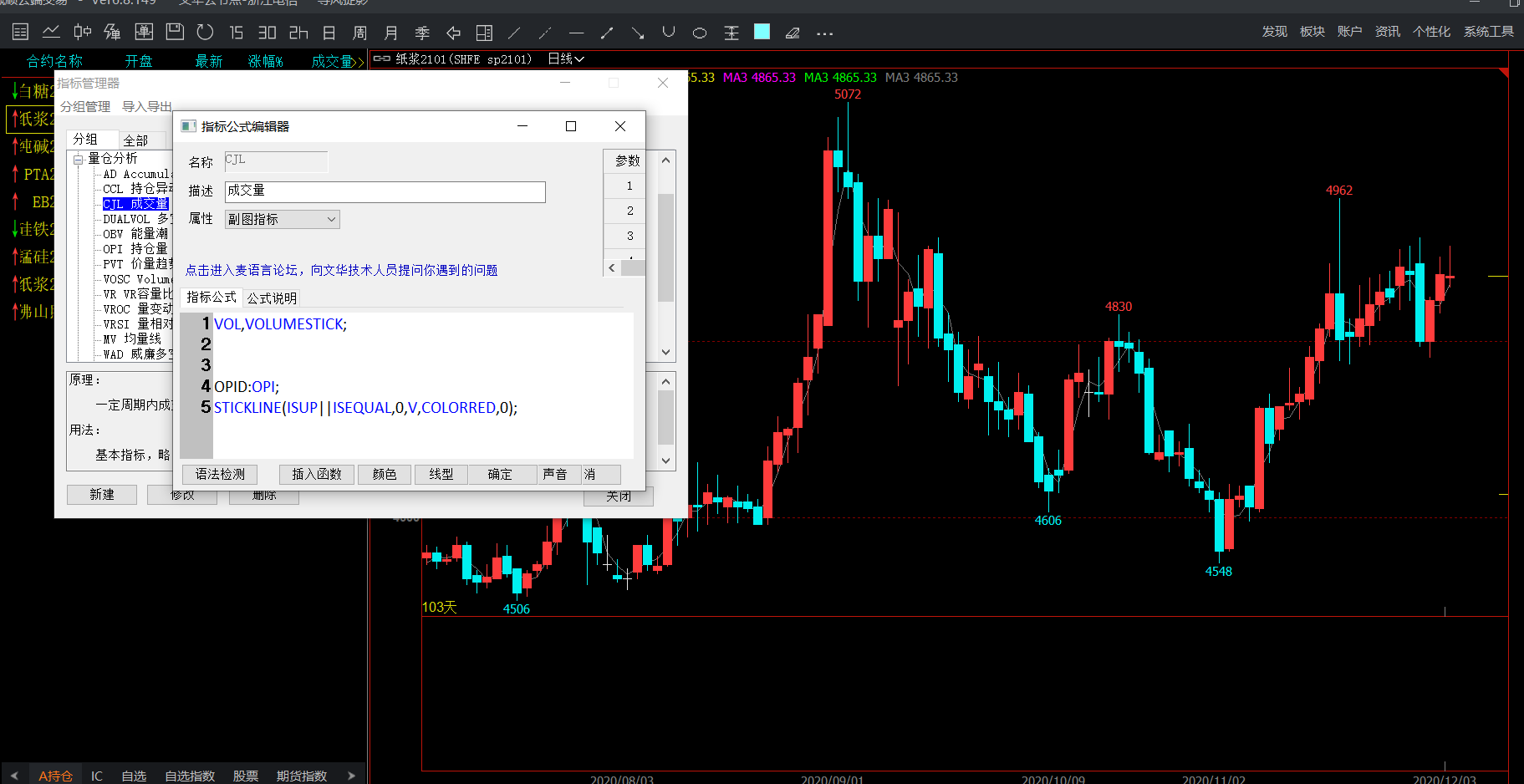 系统工具-指标管理器-量仓分析-CJL-修改