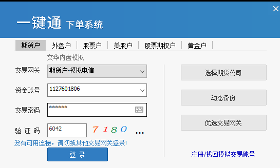 [求助]我的赢顺云账号登不上去 (文华财经)投资者咨询:[求助]我的赢顺云账号登不上去 (文华财经)来源:文华财经 日期:2020-12-3 11:01 我的文化模拟账号,在赢顺云模拟版(64位)登不上去,文华财经随身行可以,求助。 文件名:问题.png技术人员回复日期:2020-12-3 11:03我们的软件中测试,内盘模拟交易账号可以正常登录。 您在登录界面右侧-》优选交易网关,换一个交易网关登录看下。