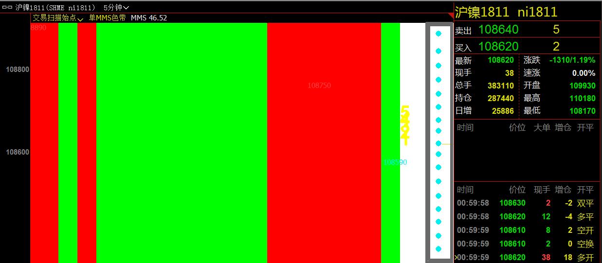 STICKLINE1(ISLASTBAR,O-X,O+X,100,0),COLORWHITE;//白色柱线宽度,可以调整数值大小来修改
