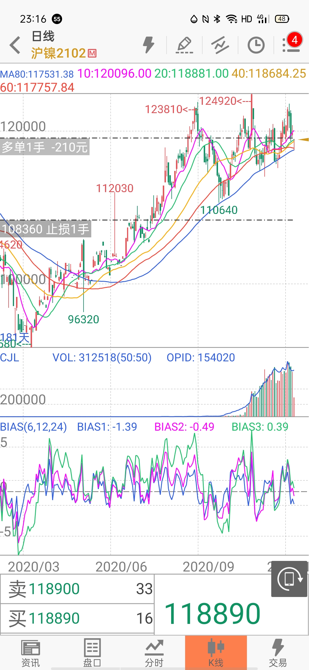 止损线画了后,线上不显示价格呢 (文华财经)投资者咨询:止损线画了后,线上不显示价格呢 (文华财经)来源:文华财经 日期:2020-12-2 22:18 止损线画了后,线上不显示价格呢技术人员回复日期:2020-12-2 22:21 菜单-》设置-》图表显示画线设置-》止损止盈线选择显示, 我们测试在显示画线的情况下是可以正常显示价格的,您看下,还有疑问提供截图。 文件名:微信图片_20201202231650.jpg