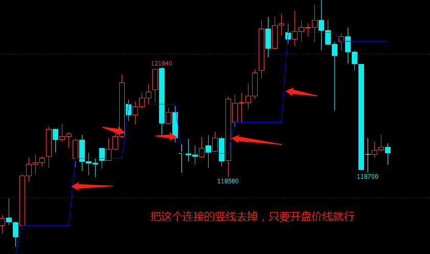 投资者咨询:这个是开盘价线,帮我把两天的开盘价的连接线去掉 (文华财经)