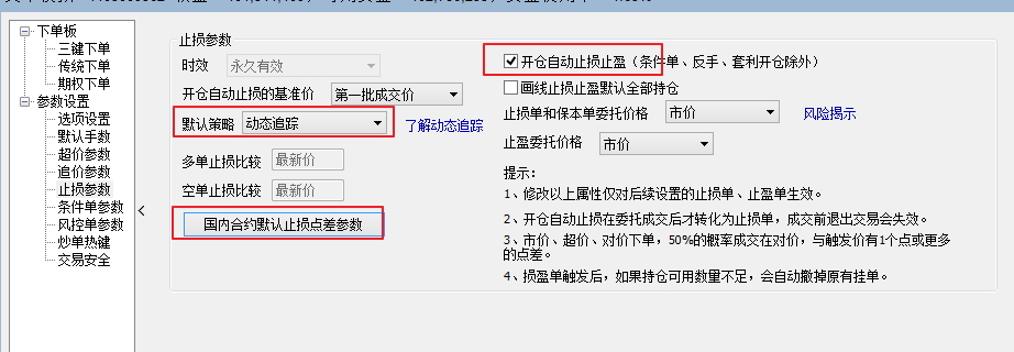 提前设置好点差后,开仓会依据当时的开仓价自动计算生成追踪止损单