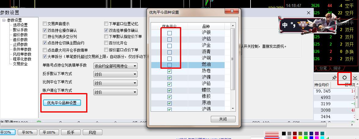 3.趋势模型上期所合约平仓先平老仓是在账户参数设置中设置的,如图取消对应合约勾选,编写正常书写即可