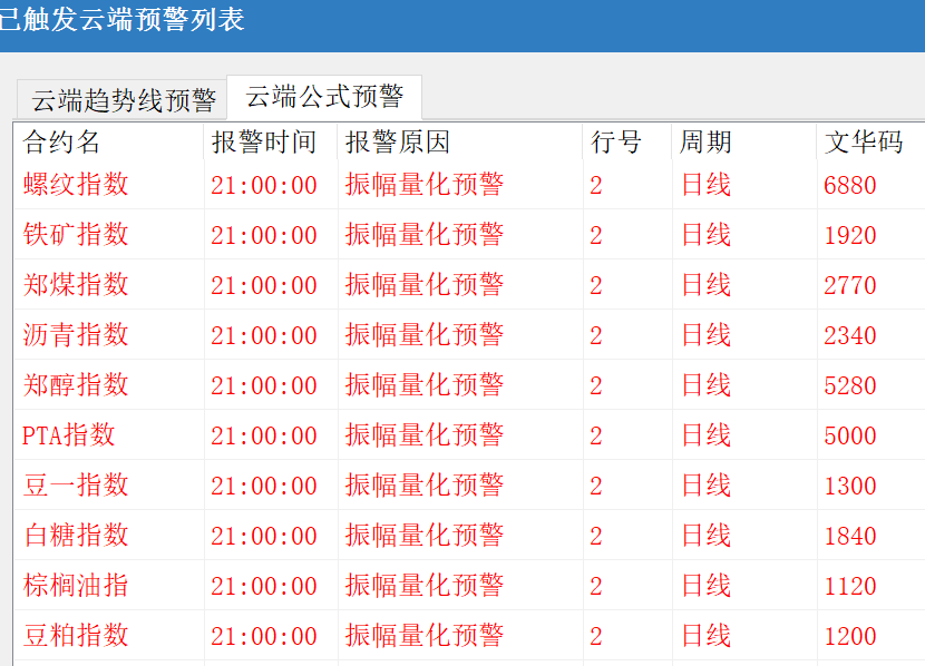 投资者咨询:[求助]您好,帮忙看一下,这个预警哪里有问题?怎么加载后在开盘的一瞬间全部预警了 (文华财经)