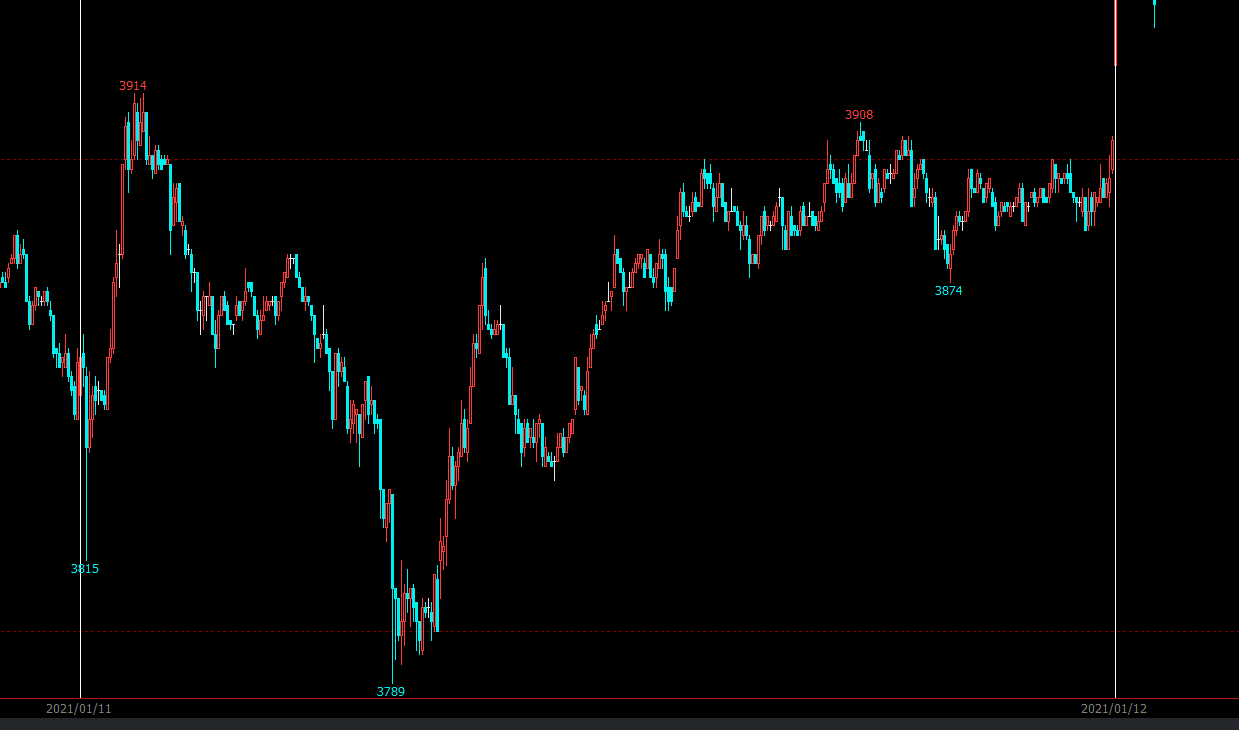 另外,LPG1月14日日k显示当日最低价3911,而一分钟K线显示最低价3913。