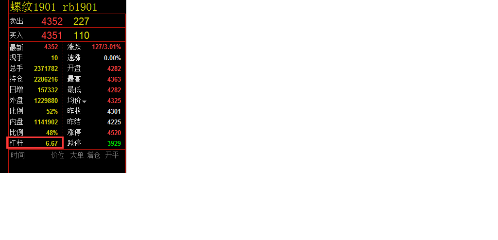 [原创报价列表 杠杆是什么意思 (文华财经WH6赢顺V6.7)投资者咨询:[原创报价列表 杠杆是什么意思 (文华财经WH6赢顺V6.7)来源:文华财经 日期:2018-8-20 9:50 文件名:杠杆.png请问这个杠杆是什么意思 技术人员回复日期:2018-8-20 9:52 杠杆=1/保证金比例 登录交易账号后就会显示这个项目投资者咨询:[原创报价列表 杠杆是什么意思 (文华财经WH6赢顺V6.7)来源:文华财经 日期:2018-8-20 9:50 这是官方给的杠杆? 那怎么和官网给的 rb1901 保证金率是9% 不一致呢? 技术人员回复日期:2018-8-20 10:15 不是的 这个保证金是您交易的保证金,实盘的话是期货公司提供的 在下单版》最右侧》合约中可以查看