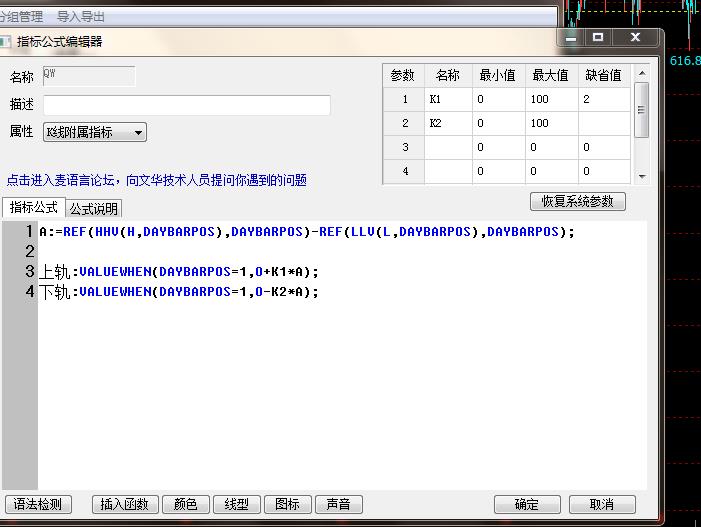 怎么在通达信或者文华财经软件上写成代码,能够在K线图中显示上轨线和下轨线 。